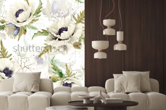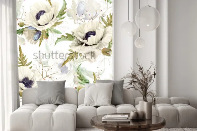 Naklejka: Wzór z akwarela maki. wektorowa ilustracja biali kwiaty. zabytkowe.