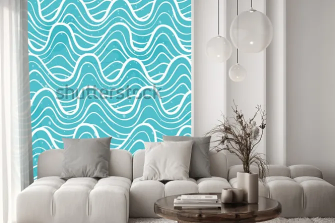 Naklejka: Wzór z fal oceanu w ozdobnym stylu. ilustracji wektorowych.