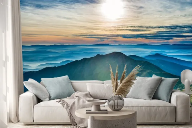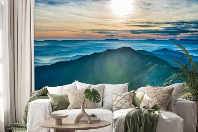 Naklejka: Zachód słońca w górach