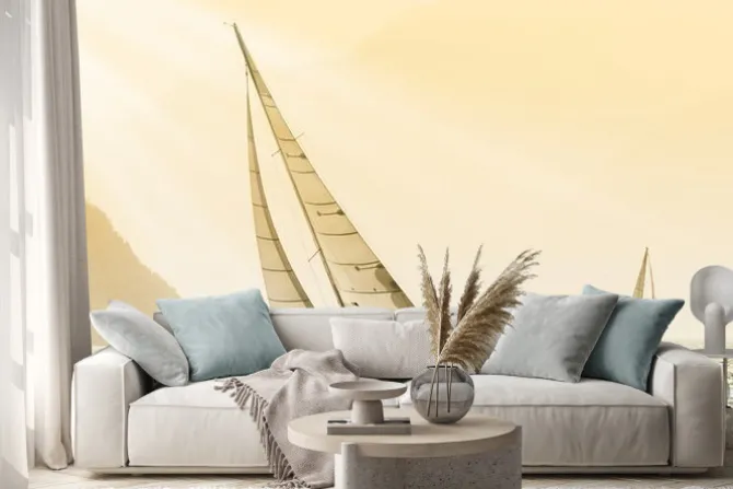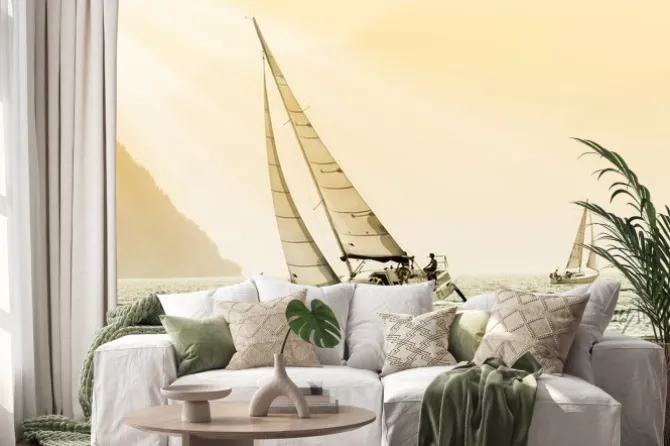 Naklejka: Żaglówki na tle nieba o zachodzie słońca