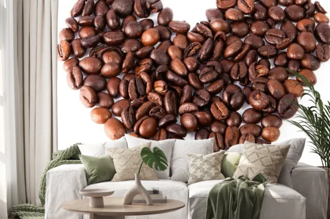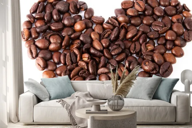 Naklejka: Zbliżenie serce wykonane z naturalnej brązowej palona kawa była