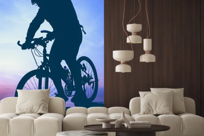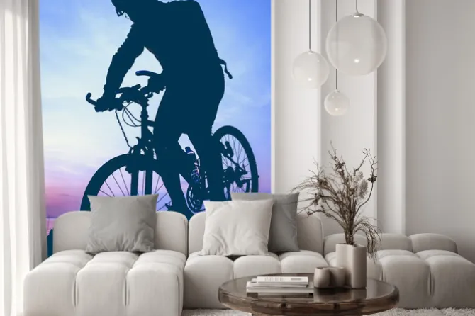 Naklejka: Zdrowy tryb życia. sylwetka rowerzysty jazda na rowerze nad morzem.
