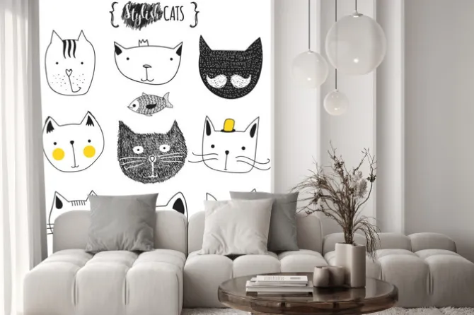 Naklejka: Zestaw cute doodle kotów. szkic kota. cat sketch. spódniczka