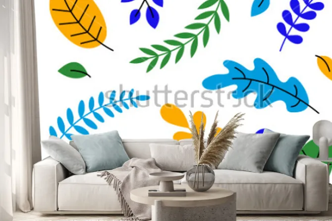 Naklejka: Zestaw kolorowych liści jesienią i jagody. pojedynczo na białym