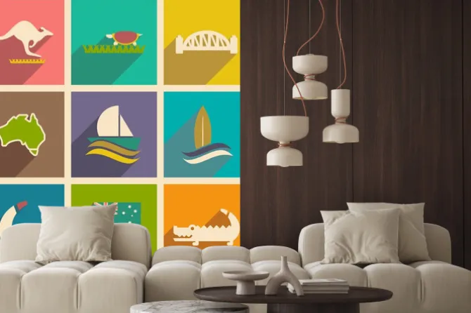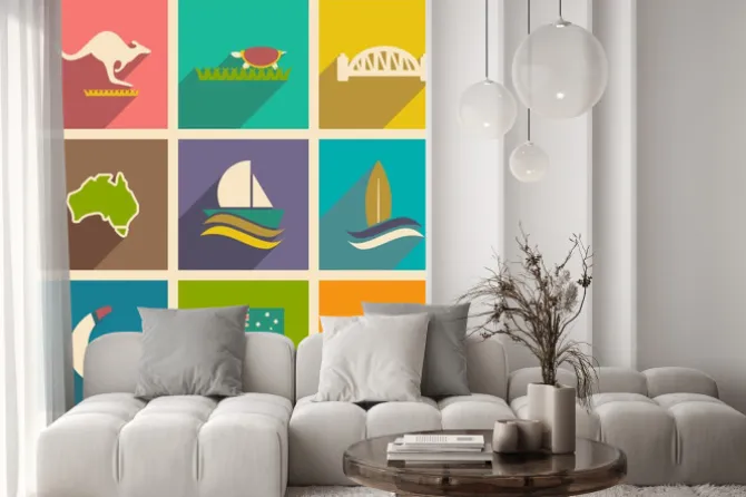 Naklejka: Zestaw płaskich ikon z długim cieniem australijczyka