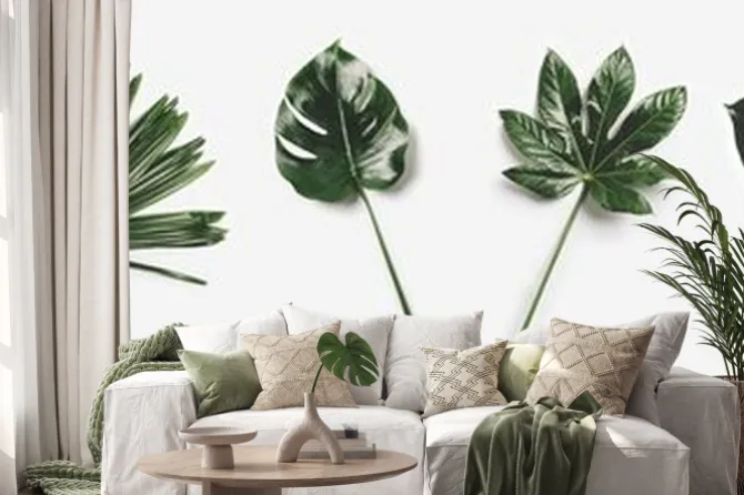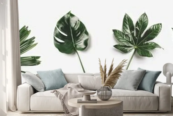 Naklejka: Zieleni palma liście odizolowywający na białym tle.