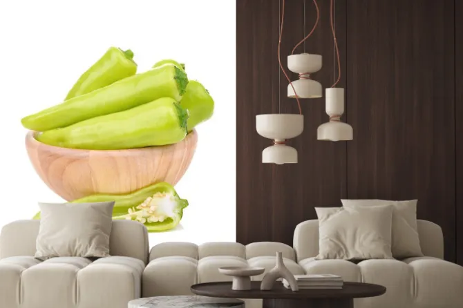 Naklejka: Zielona papryka na białym tle
