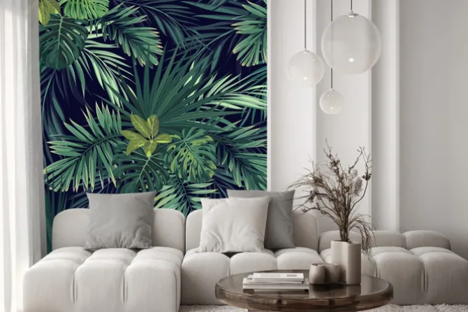 Naklejka: Zielona tropikalna roślinność na ciemnym tle
