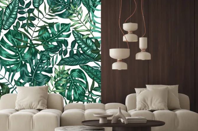 Naklejka: Zielone liście tropikalne na białym tle