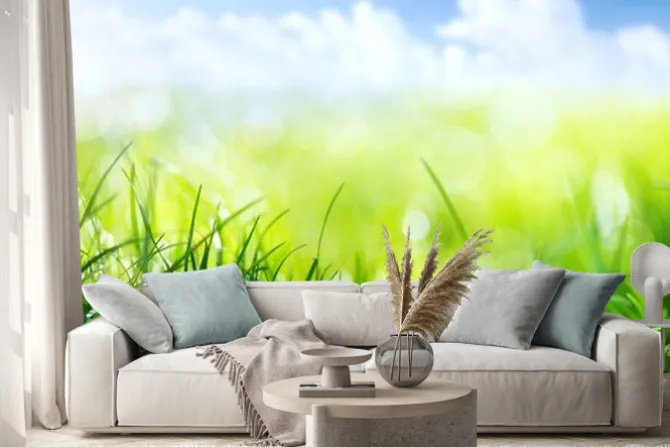 Naklejka: Zielone źdźbła trawy z bliskiej perspektywy