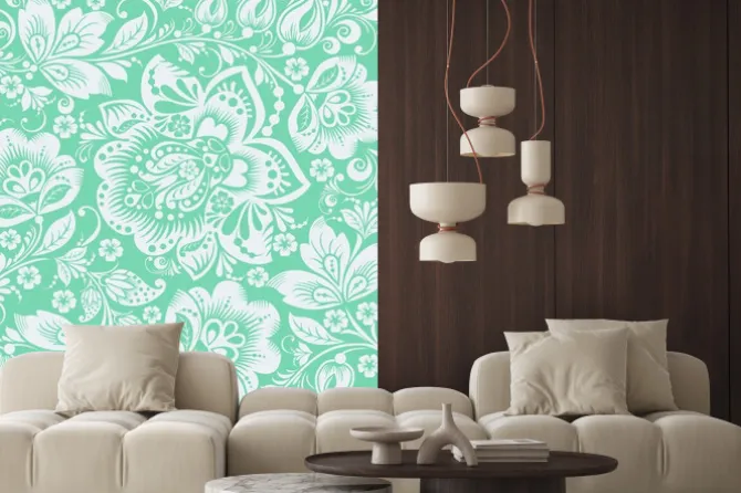 Naklejka: Zielony ozdobne kwiaty bez szwu deseń
