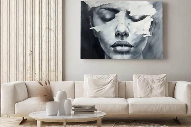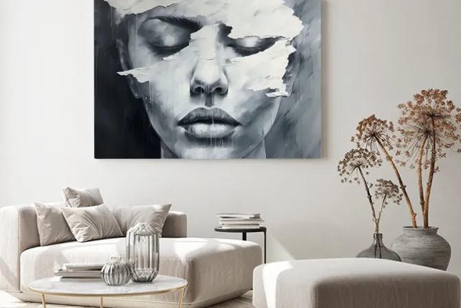 Obraz: Abstrakcyjny portret kobiety w szarości