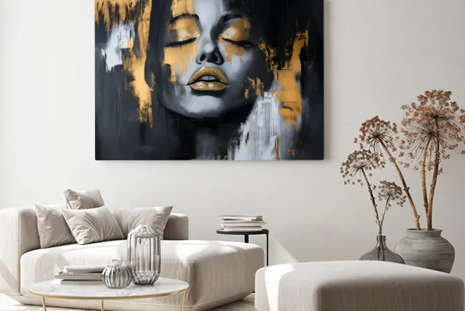 Be the first to review “Obraz: Abstrakcyjny portret kobiety ze złotem na ustach” Anuluj pisanie odpowiedzi