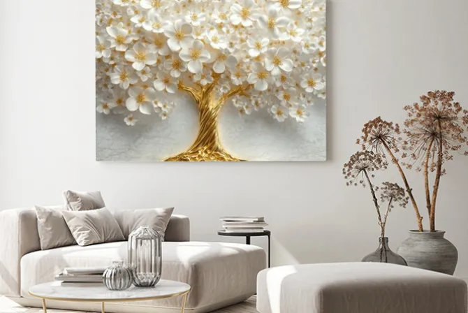 Be the first to review “Obraz: Biało-złote kwiaty na drzewie 3d” Anuluj pisanie odpowiedzi