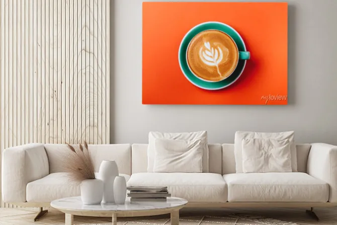 Be the first to review “Obraz: Cyan coffee cup over orange background. top view flat lay with” Anuluj pisanie odpowiedzi