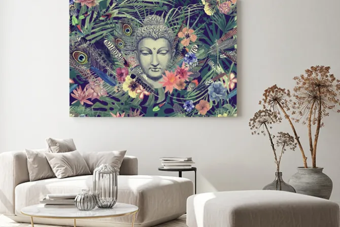 Be the first to review “Obraz: Głowa buddy wśród kwiatów i pawich piór” Anuluj pisanie odpowiedzi