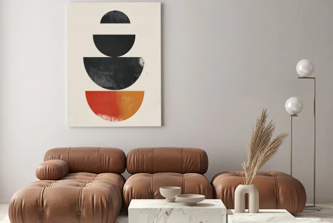 Obraz: Kształty geometryczne na beżowym tle w stylu minimalistycznym