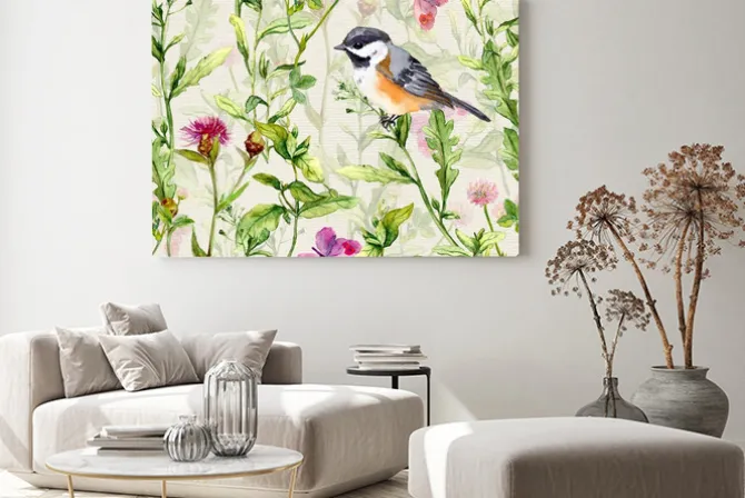 Obraz: Malowany wzór z ptakiem na gałązce