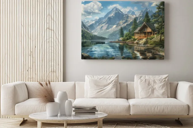 Be the first to review “Obraz: Malowniczy krajobraz drewniany domek i górskie jezioro” Anuluj pisanie odpowiedzi