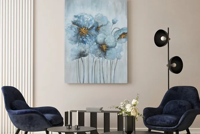 Be the first to review “Obraz: Niebieskie kwiaty ze złotem malunek” Anuluj pisanie odpowiedzi