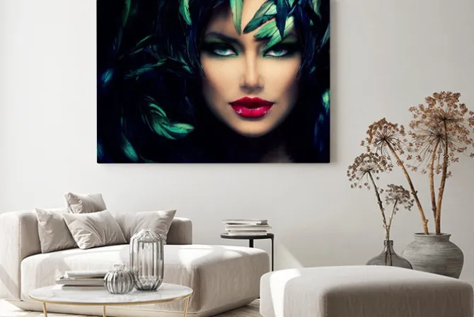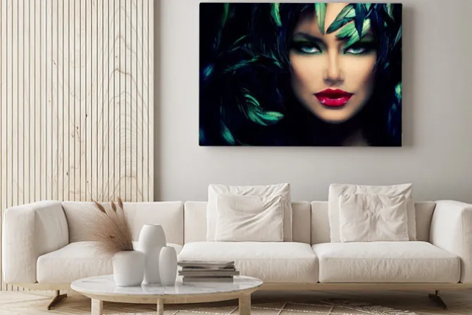 Be the first to review “Obraz: Twarz kobiety w zielonym makijażu w otoczeniu piór” Anuluj pisanie odpowiedzi
