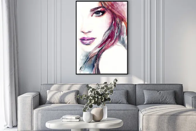 Plakat: Abstrakcyjna twarz kobiety w stylu akwareli