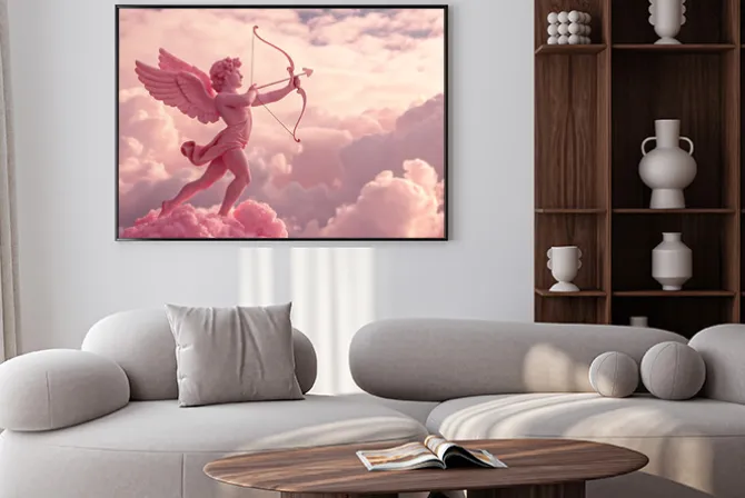 Plakat: Amor strzała miłość różowe chmury romantyczny styl