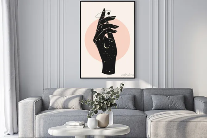 Plakat: Beautiful mystic woman hand silhouette with night starry sky