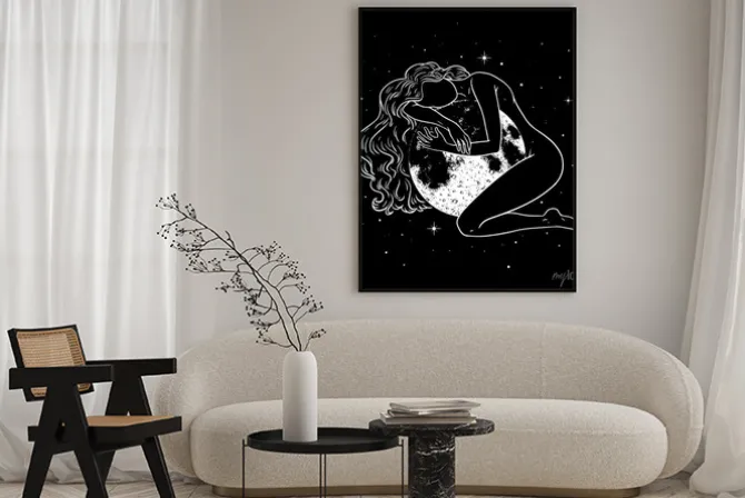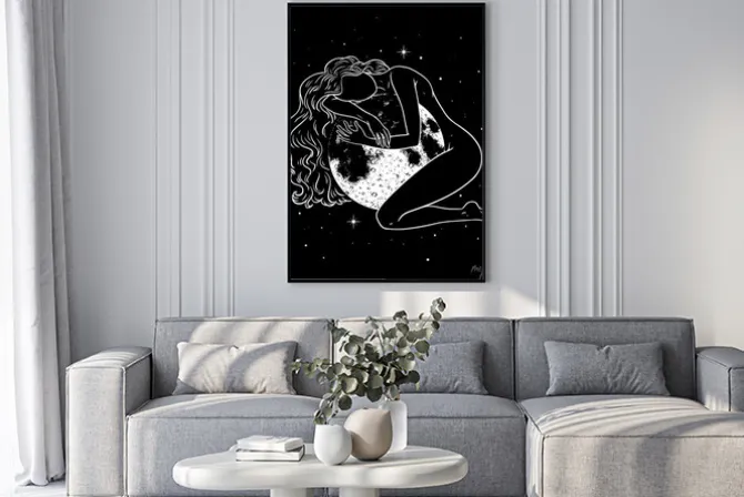 Be the first to review “Plakat: Beautiful woman hugging full moon in space, magic theme, goddess” Anuluj pisanie odpowiedzi