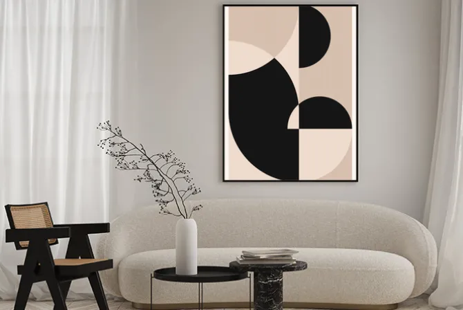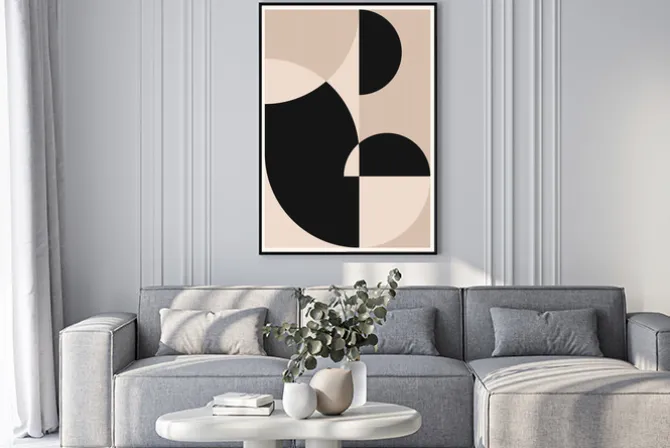 Beżowe i czarne kształty abstrakcja inspirowana bauhausem.