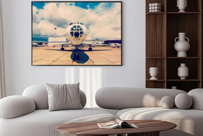 Plakat: Biały samolot na platformie