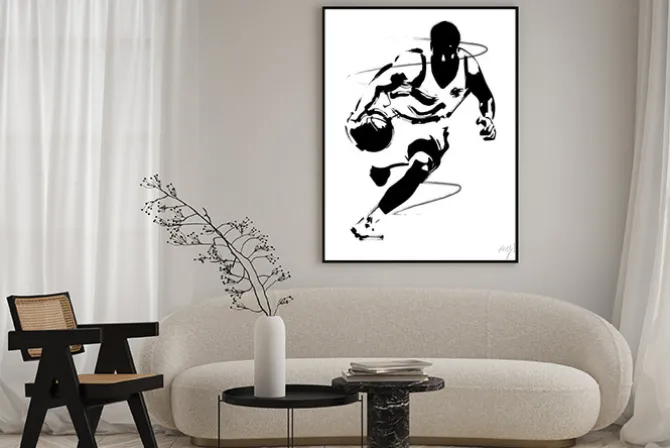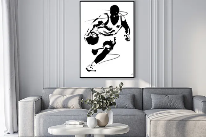 Plakat: Biegnący koszykarz z piłką