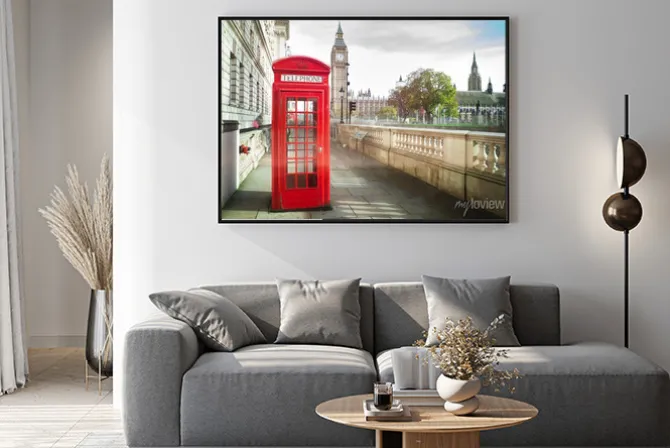 Plakat: Big ben i czerwona budka telefoniczna na pierwszym planie