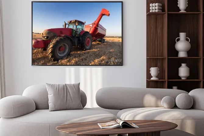 Plakat: Ciągnik rolniczy na polu ścierniska