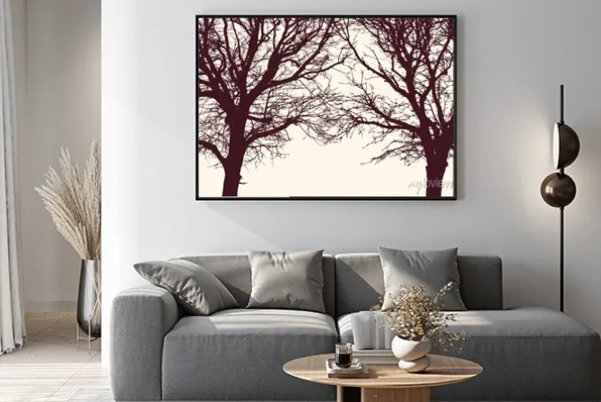 Plakat: Dwie sylwetki drzew bez liści