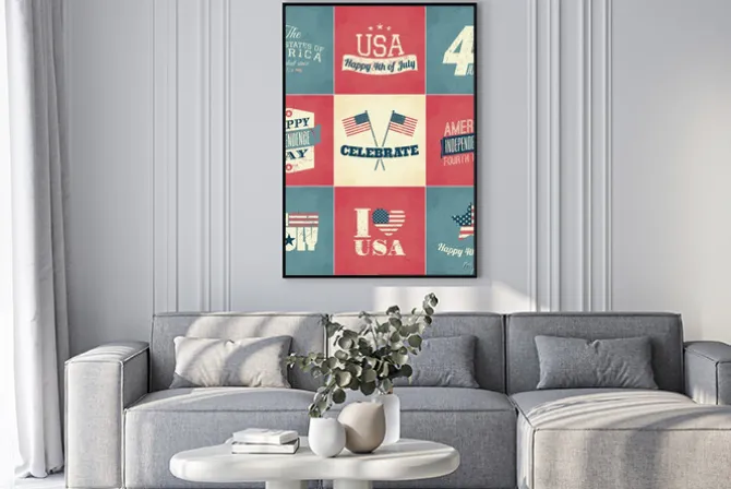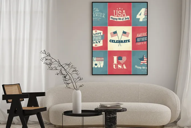 patriotyczny, dekoracyjny, niebieski, USA, graficzny, ilustracje, retro, gwiazdy, czerwony