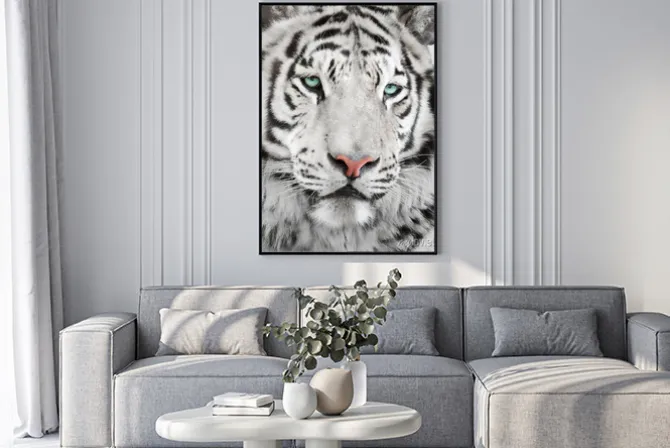 Plakat: Elegancki biały tygrys portret