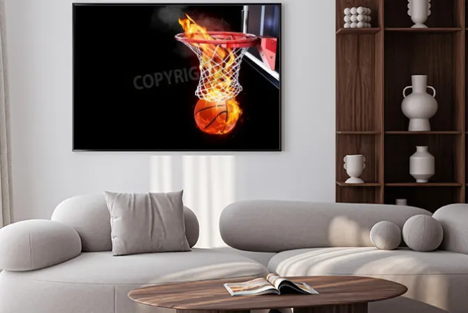 Be the first to review “Plakat: Flaming basketball going through a court net room for text or” Anuluj pisanie odpowiedzi