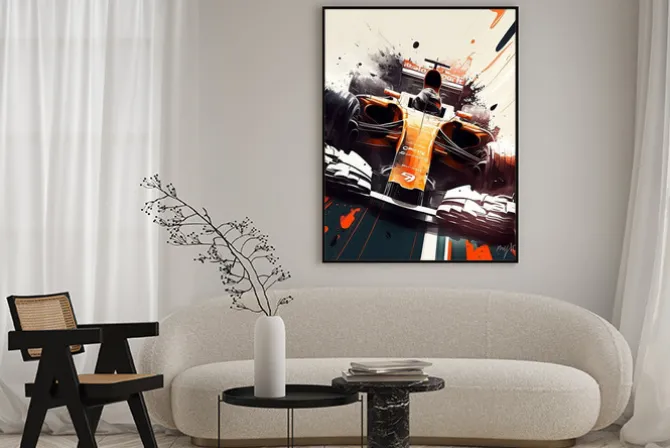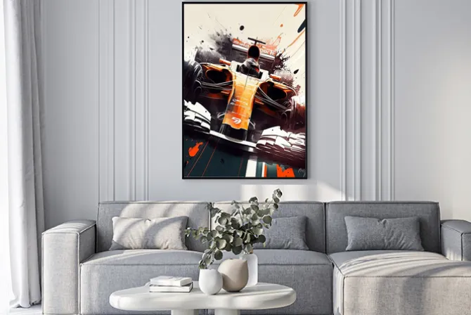 Plakat: Formula 1 car illustration in orange and black