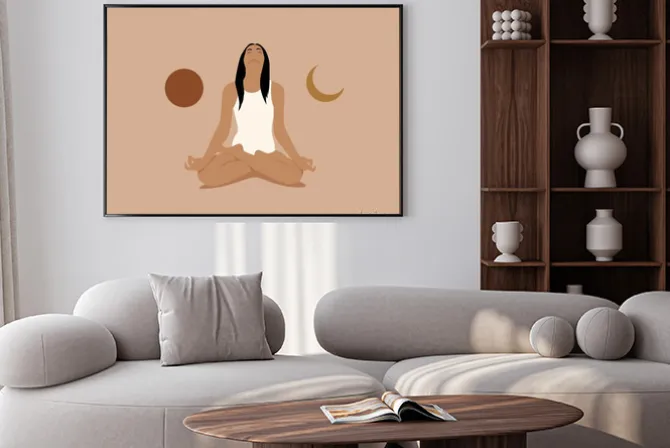 zen, księżyc, ilustracje, kolory, ciało, pokój dziewczynki, kobieta, joga, medytacja