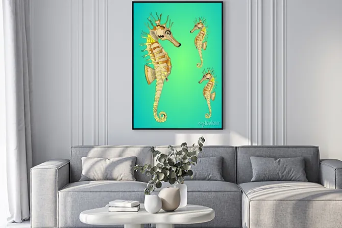 Plakat: Grafika z konikami morskimi