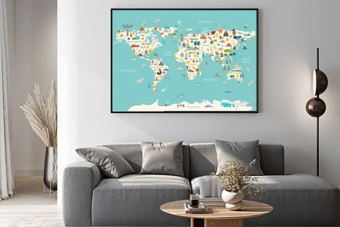Plakat: Ilustrowana mapa świata