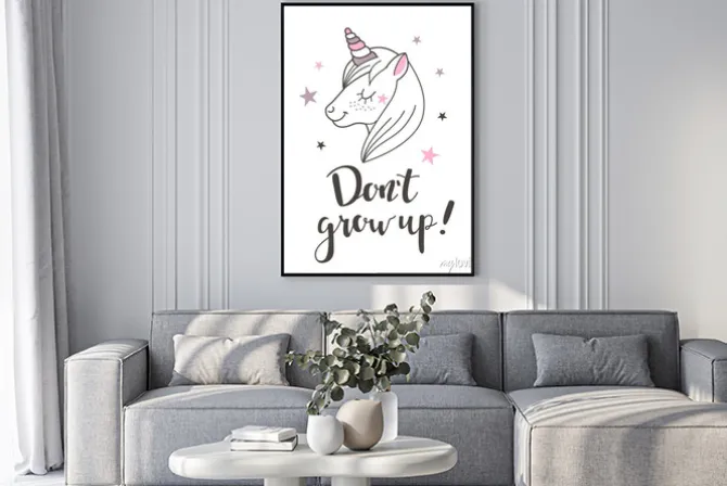 jednorożec, bajki, styl skandynawski, napis, moda, słodycze, graficzny, ilustracje, pokój dziecięcy