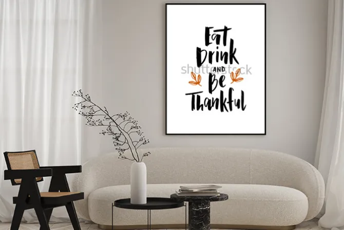 Plakat: Jedz, pić i być wdzięcznym – ręcznie używać typografii napis