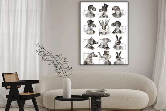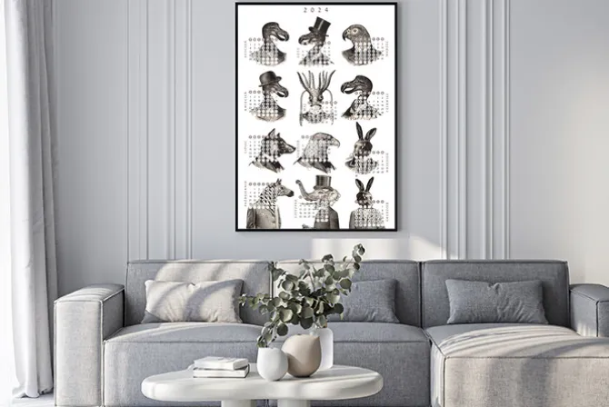 Plakat: Kalendarz 2024 zwierzęta vintage