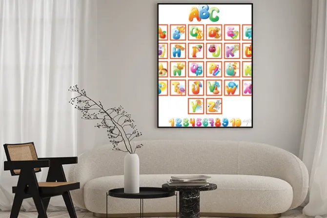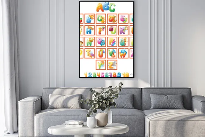 Plakat: Kolorowe alfabet dla dzieci z obrazkami