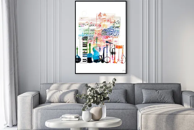 Plakat: Kolorowe projektowania instrumentów muzycznych