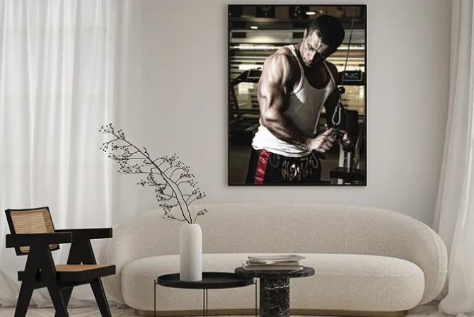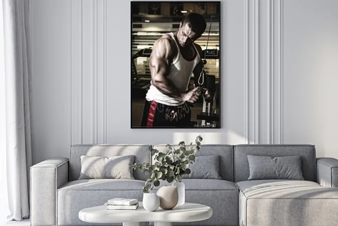 Plakat: Kulturysta trenuje mięśnie w siłowni
