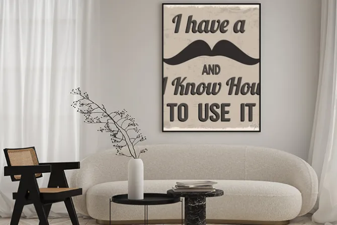 Plakat: Mam wąsy i wiem, jak go używać retro plakat