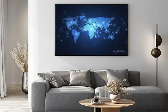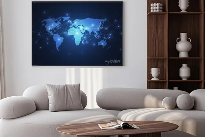 Plakat: Mapa świata z punktami i liniami połączeń